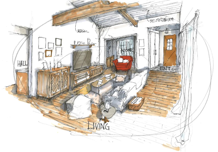 リビングは家族が集まる中心的な場所。家族の暮らしをイメージして、暮らし方にぴったりな居場所をデザインしていきます。